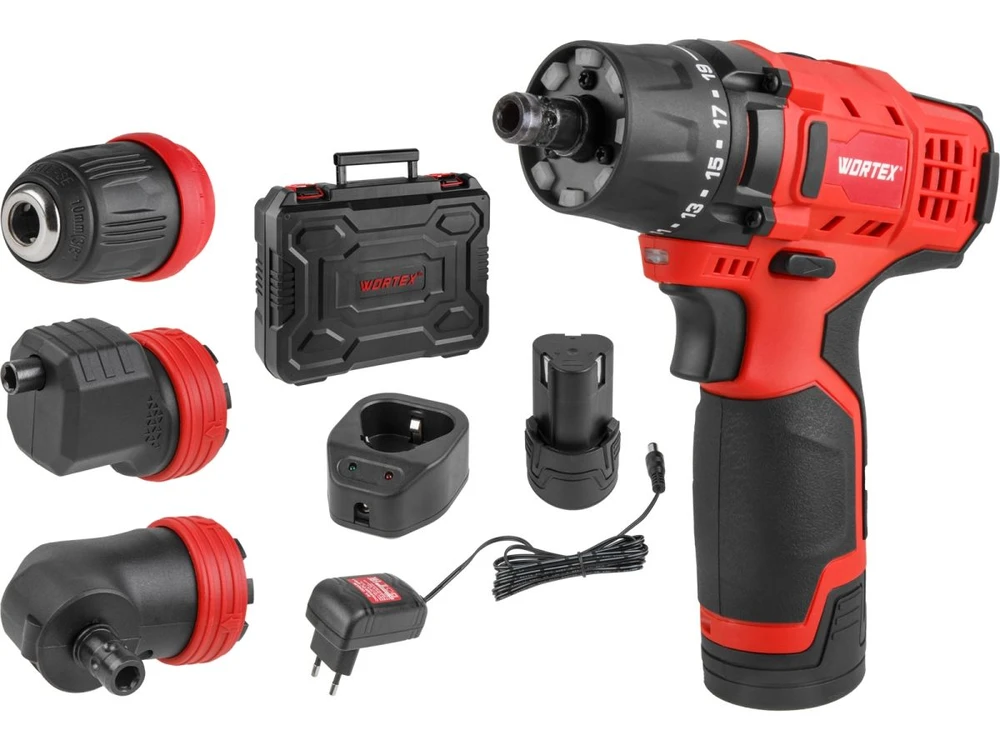 Аккум. дрель-шуруповерт WORTEX BD 1215 LiSET в чем. + 2 насадки, 12 В, 30 Н*м, 2х1.5 А*ч, БЗП 10 мм (Быстросъемный патрон, шурупы до 6 мм)
